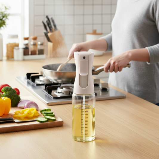 Spray And Pour Oil Dispenser Bottle Beige 470ml With Spoon